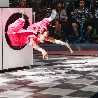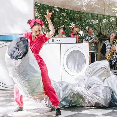 A greedy boss tries to wring money out of her laundromat, but it fights back with monster laundry, dancing pants, magic portals and comic disasters. In this Pixar meets circus production, fans of fantasia and roald dahl will be transported to a magical realm of laughter with giant puppets, aerialists, jugglers, and more!