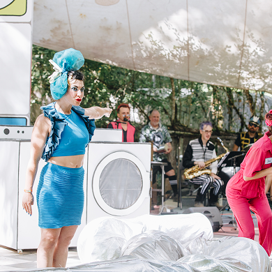 “LaunderLand is the show you always wanted but didn’t know you could have. It pokes fun at capitalist nightmares while toying with the absurd. You’ll be wowed by the juggling, aerialists and sudsy stilt walkers. I found myself chuckling while reaching into the dryer for weeks. Don’t miss this funny but poignant show.”